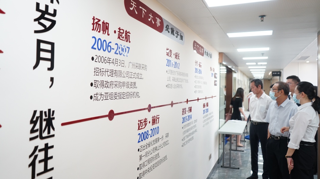 2020年9月2日,交通銀行廣東省分行鐘達堅副行長一行蒞臨我司總部考察交流。在采聯科技CEO洪志偉、廣州團隊總經理李嬋娟的陪同下,鐘副行長一行參觀了采聯總部各部門辦公區域、企業文化陳列區域、開評標會議中心等。