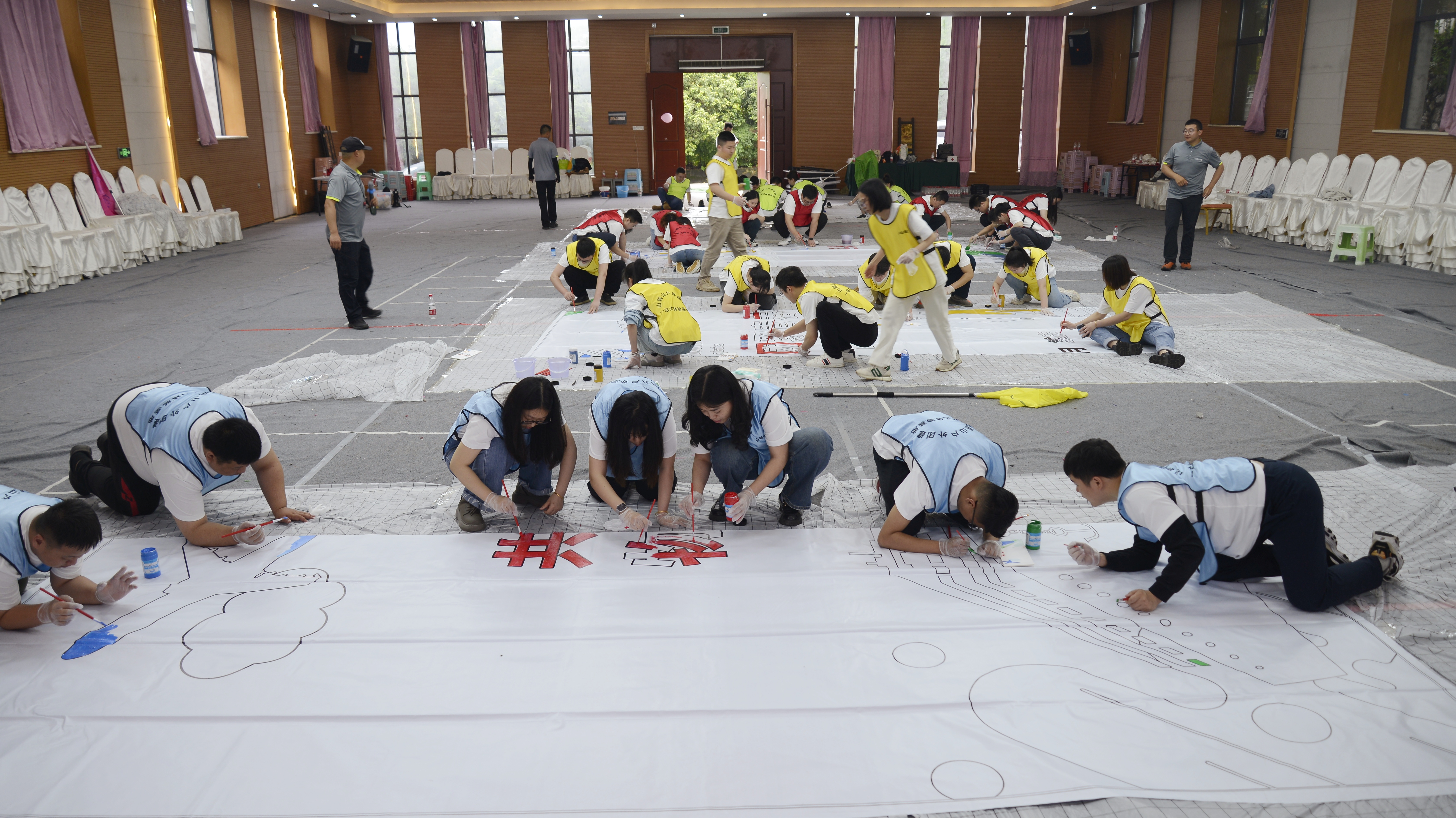 活動主要分為共繪“納斯卡巨畫”和趣味團建活動兩個環節。在繪制“納斯卡巨畫”過程中,團員青年們分組分工協作,一筆一劃勾勒形狀,一橫一豎涂刷色彩,繪制完成所負責部分的圖案,實現從無到有,從雛形到重彩,用自己的筆觸和想象,共同描繪自己心中的“一個中國物流”藍圖。