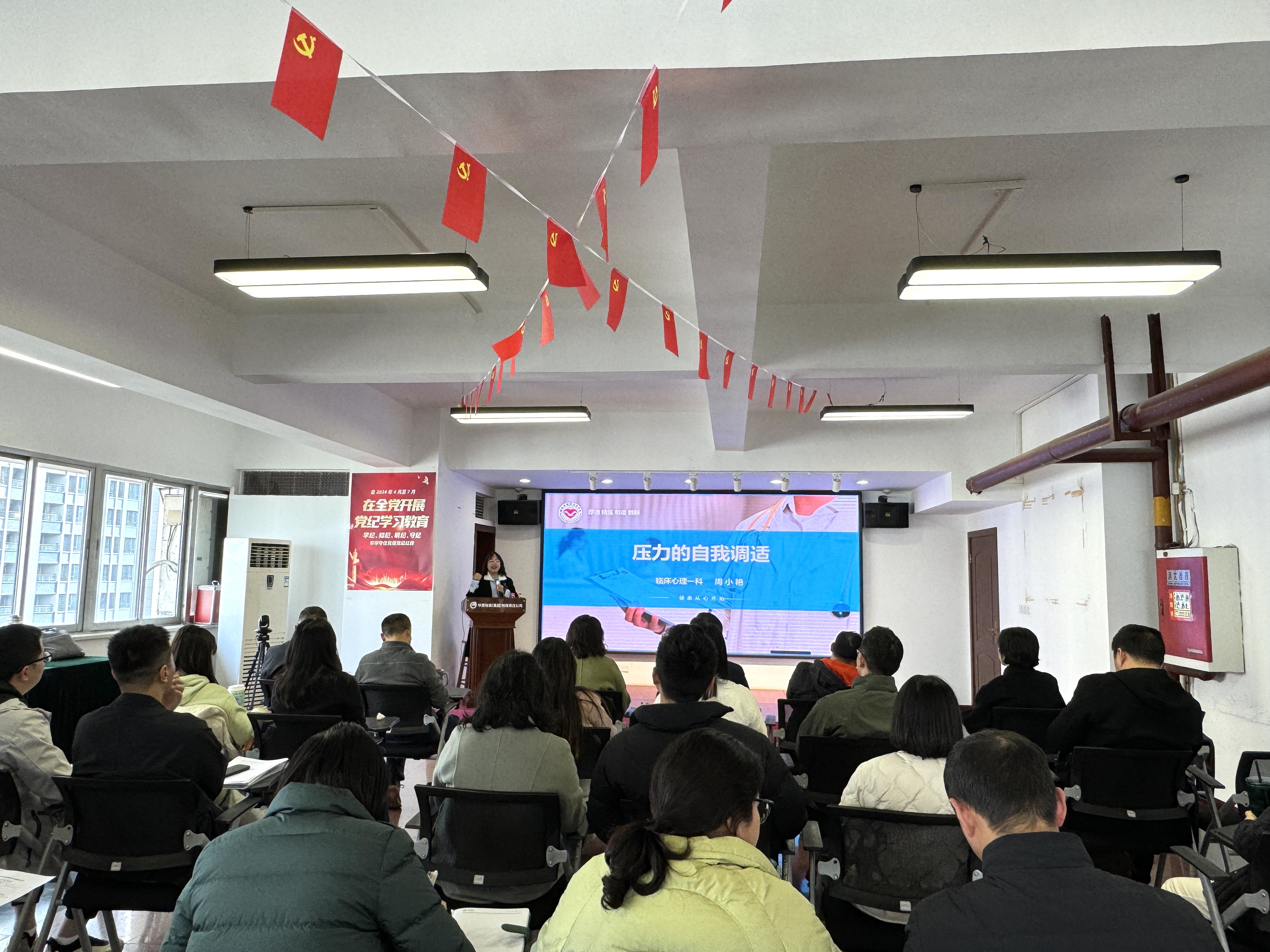 講座現場,周小艷教授以深入淺出的方式剖析了壓力的來源與壓力反應的表現,從工作任務的繁重到生活瑣事的紛擾,讓大家深刻認識到壓力無處不在。周小艷教授還分享了許多實用的應對壓力的技巧,如深呼吸法、暫停情緒、運動健身等,教會大家面對挑戰和困難時保持良好的心態,更好地適應職場變化。職工們時而專注聆聽,時而積極互動,在輕松的氛圍中汲取著心理健康知識的養分。